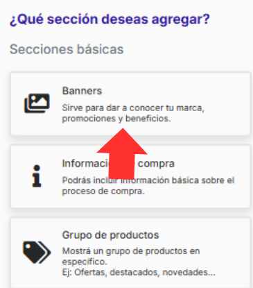 Una vez que agregaste la sección de banners, vas a poder configurarla a tu medida: