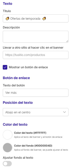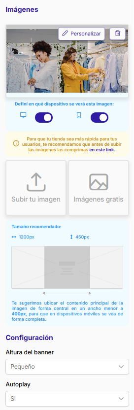 - 🔗 Enlace: Podés hacer que el banner redirija a una categoría, producto o sección específica de tu tienda.