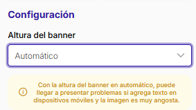 Andá al final de la configuración del banner y activá la opción “Automático” en la sección de Altura del banner. Esto va a permitir que se adapten automáticamente a cada dispositivo 📱💻.