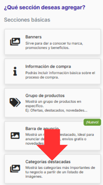 - 📸 Subí una imagen por cada categoría que quieras destacar.