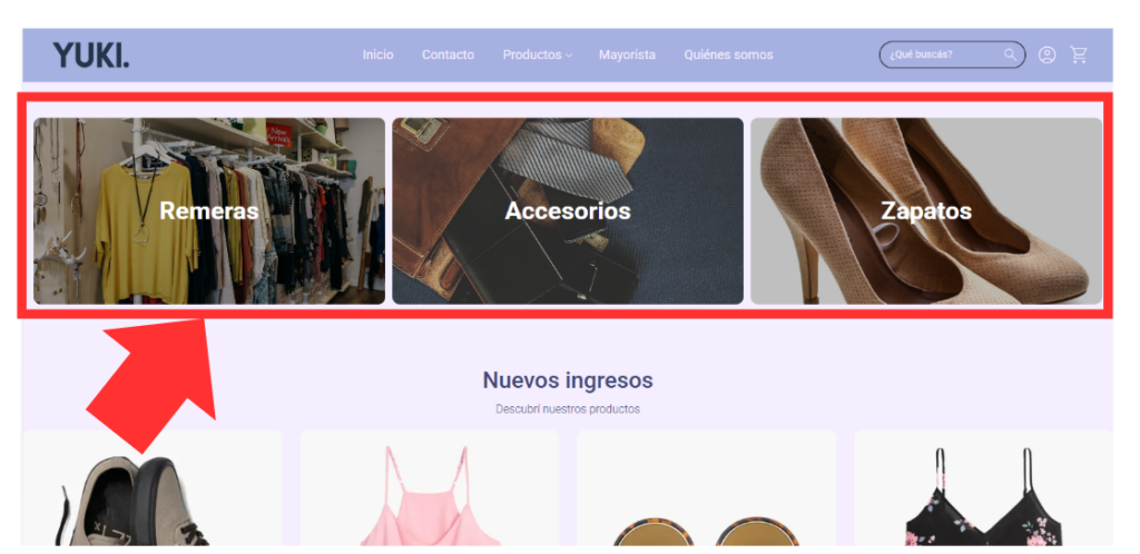 En Tienda Negocio podés mostrar tus categorías más importantes de forma visual y atractiva, destacándolas en la página de inicio para que tus clientes naveguen más fácil.