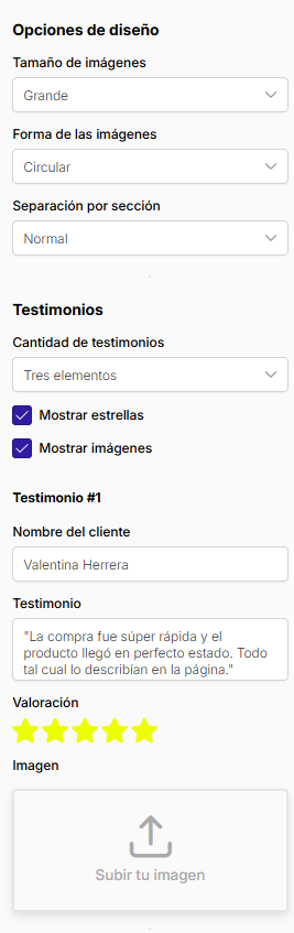 - 🔢 Cantidad de testimonios: elegí cuántos mostrar en pantalla.