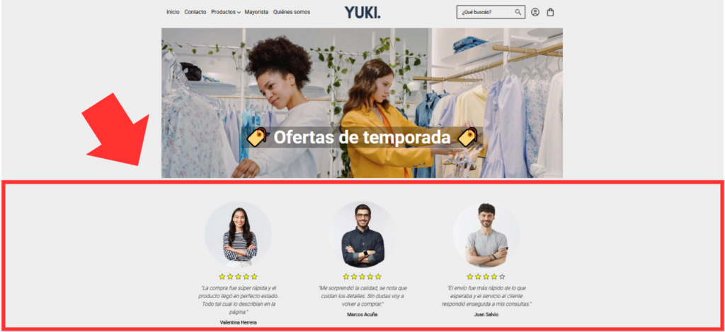 Una vez agregada la sección, vas a poder configurar varios detalles para que se adapten al diseño de tu tienda: