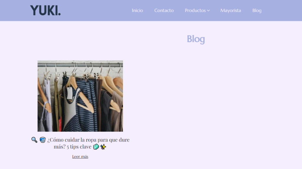 Tu blog va a tener su propia sección dentro de tu tienda online. Cuando un cliente entre, va a ver: