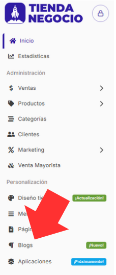- Hacé clic en el menú de la izquierda donde dice “Blogs” 📰.