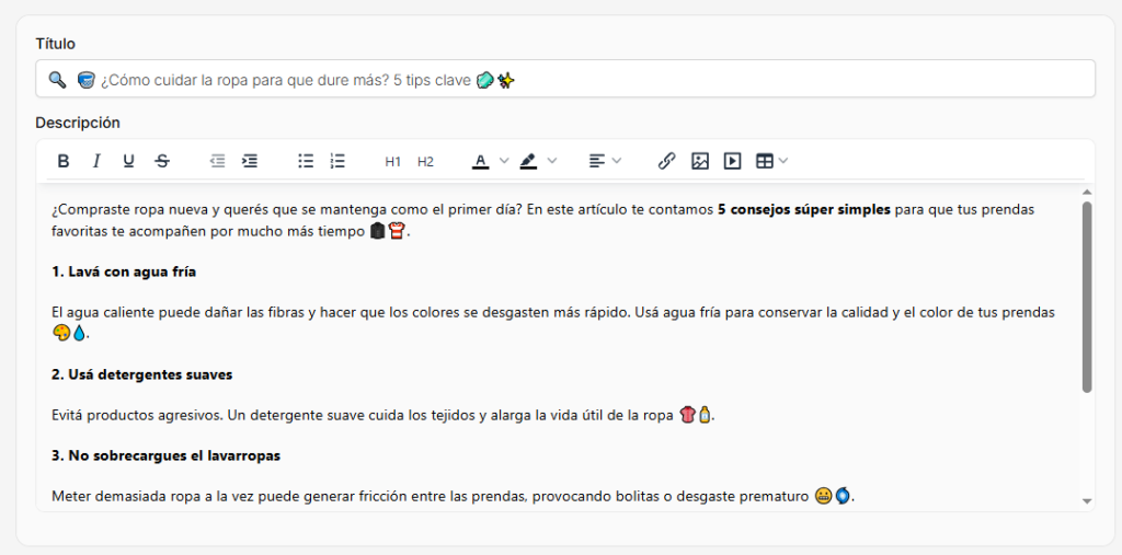 - ✅ Guías prácticas (cómo usar tus productos, cómo elegir el mejor, etc.).