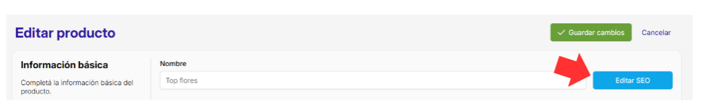 ⚠️ Recordá guardar los cambios del producto para que las modificaciones de SEO se apliquen correctamente. Si no guardás, los cambios no impactan.