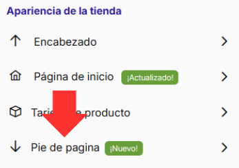 - Dentro de Diseño Tienda, hacé clic en “Pie de página” 📄.