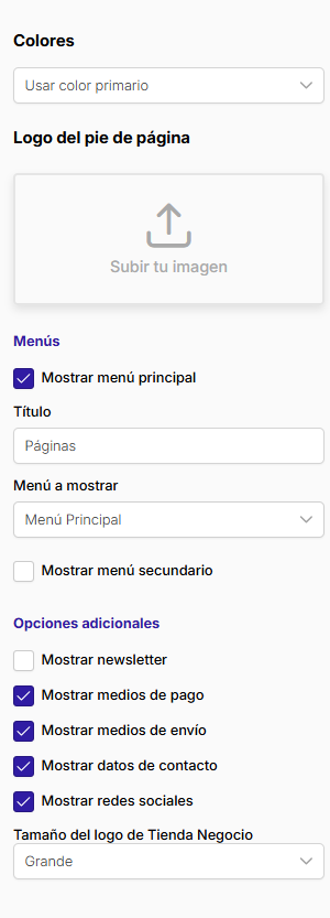 El estilo del pie de página puede variar dependiendo del diseño que seleccionaste para tu tienda.