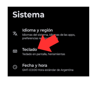 3️⃣ Presioná Teclado > Teclados ⌨️