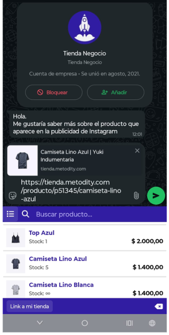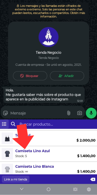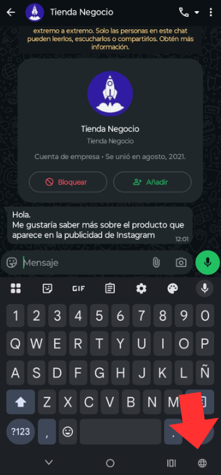 Solo entrá a una conversación de WhatsApp, Instagram u otra red social 💬📲 y seleccioná el Teclado Negocio para tener acceso rápido a los enlaces de tus productos 🛍️🔗.