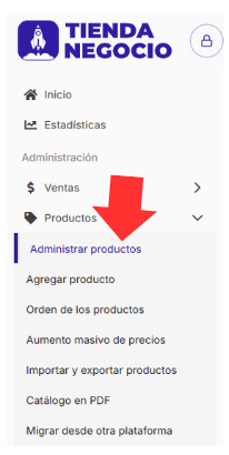 2️⃣ Andá a la sección “Administrar productos” 📦