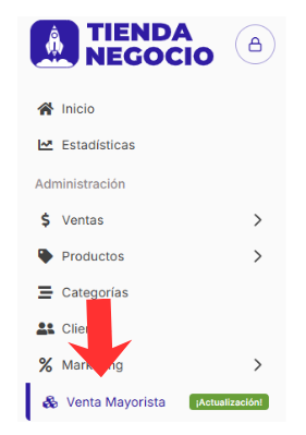 - Aparecerá un botón en el menú de tu tienda que se llamará “Mayorista”. 🏷️