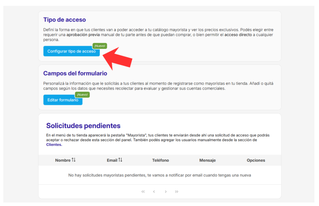 Desde ahí vas a poder configurar cómo acceden tus clientes a esa sección de la tienda. ⚙️