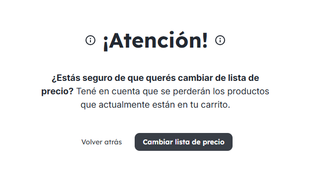 De todas formas, el sistema muestra una advertencia al cliente antes de hacer el cambio, para que sepa que su carrito se reiniciará.