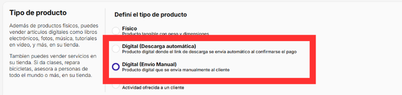 3️⃣ Desde ahí, en Tipo de Producto, seleccioná el tipo Digital